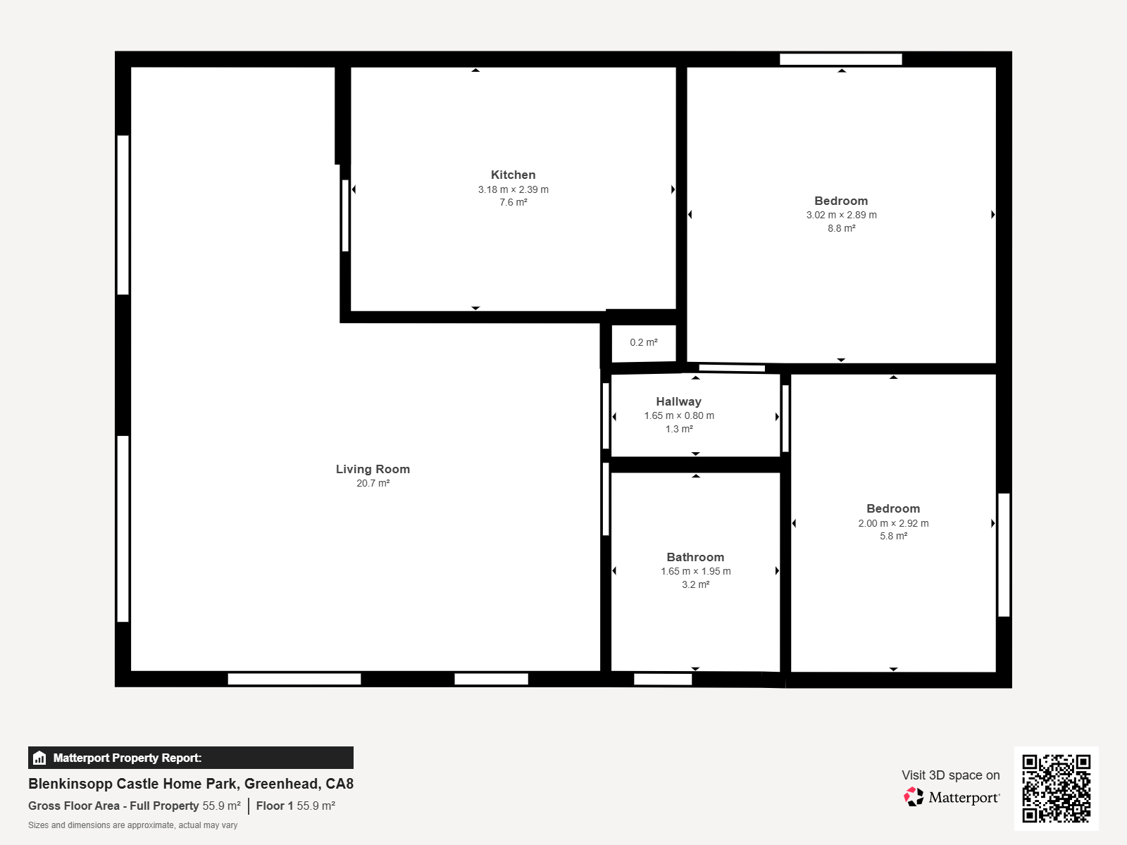 The park offers dedicated resident parking and direct access to the Blenkinsopp Castle Inn, a long-established country inn with historic ties to the castle and local estate. The inn occupies a prominent position within the grounds and retains period character while providing food, drink, and regular community events that add to the site’s village-like atmosphere. The home itself occupies an idyllic setting with spectacular countryside views and is approximately three miles from the market town of Haltwhistle, with Hexham and Carlisle both reachable in under 30 minutes by car.