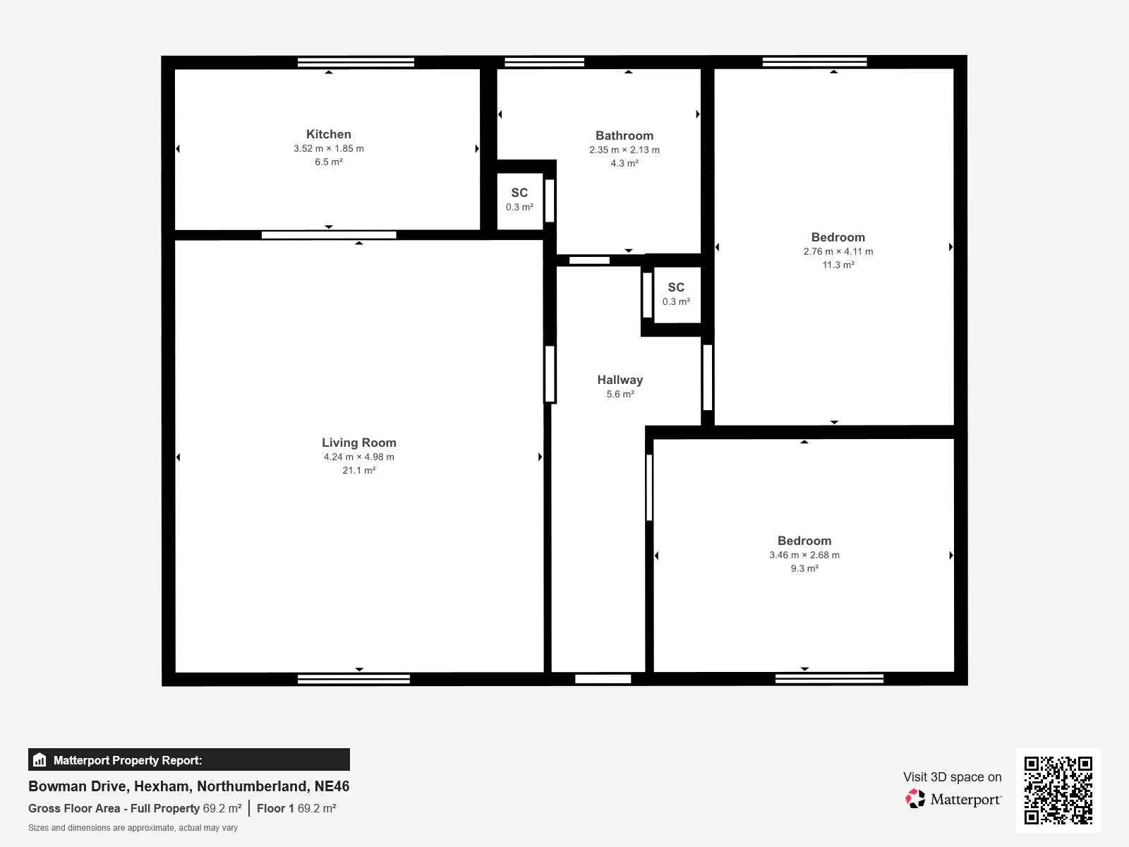 Bowman Drive sits within easy reach of Hexham’s excellent amenities, including shops, cafés, restaurants and the popular Sele Park. The town offers strong transport links via the A69 and regular rail services to Newcastle and Carlisle, along with well-regarded schooling and healthcare facilities. A convenient and well-connected location with a strong community feel.